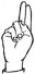 На ћирилици написано РАДОВАН МИЛОШИЧЕВИЋ састоји се из 18 слова [?]. Исписано ћириличном једноручном азбуком за глувонеме: